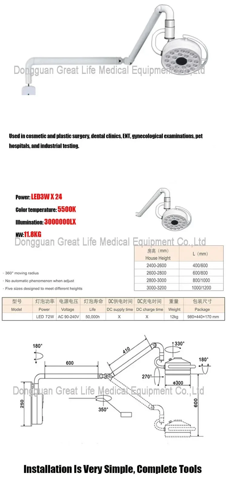 4. Function: Lifting and mobile function, brightness adjustable, wide range voltage, matched with a handle.